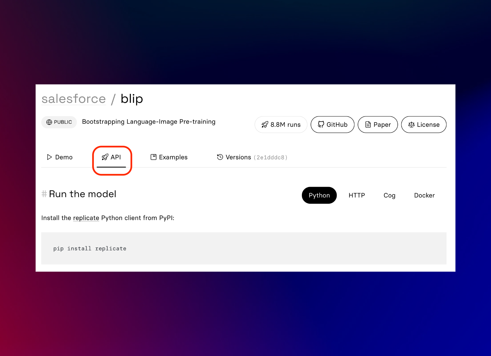 *Note: You can use Replicate for free, but after a bit you'll be asked to enter your credit card. The price varies depending on the model you use. The model we are using, salesforce/blip, costs approximately $0.00042 to run.