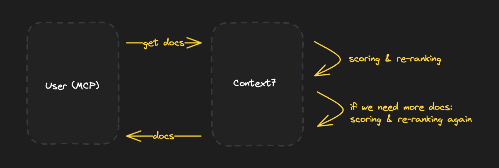That way, the model only gets back the specific documentation pieces that answer the query. It's actually faster too, since there's no back-and-forth. The only real trade-off is on our end. Each request now costs us more because we run reranking in addition to vector search.