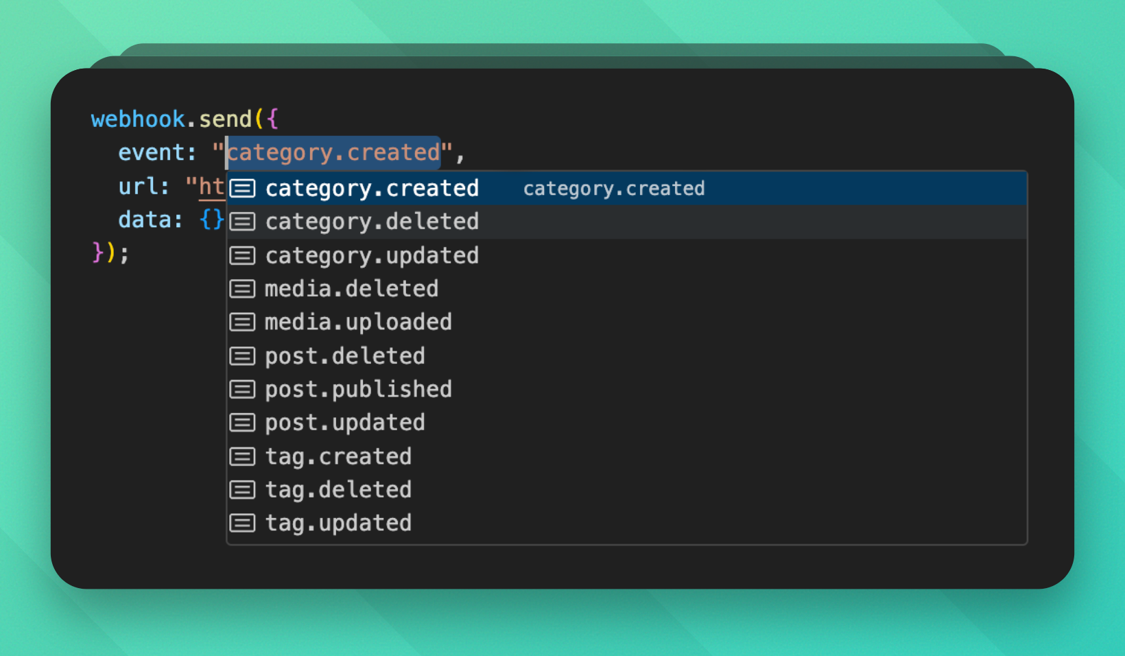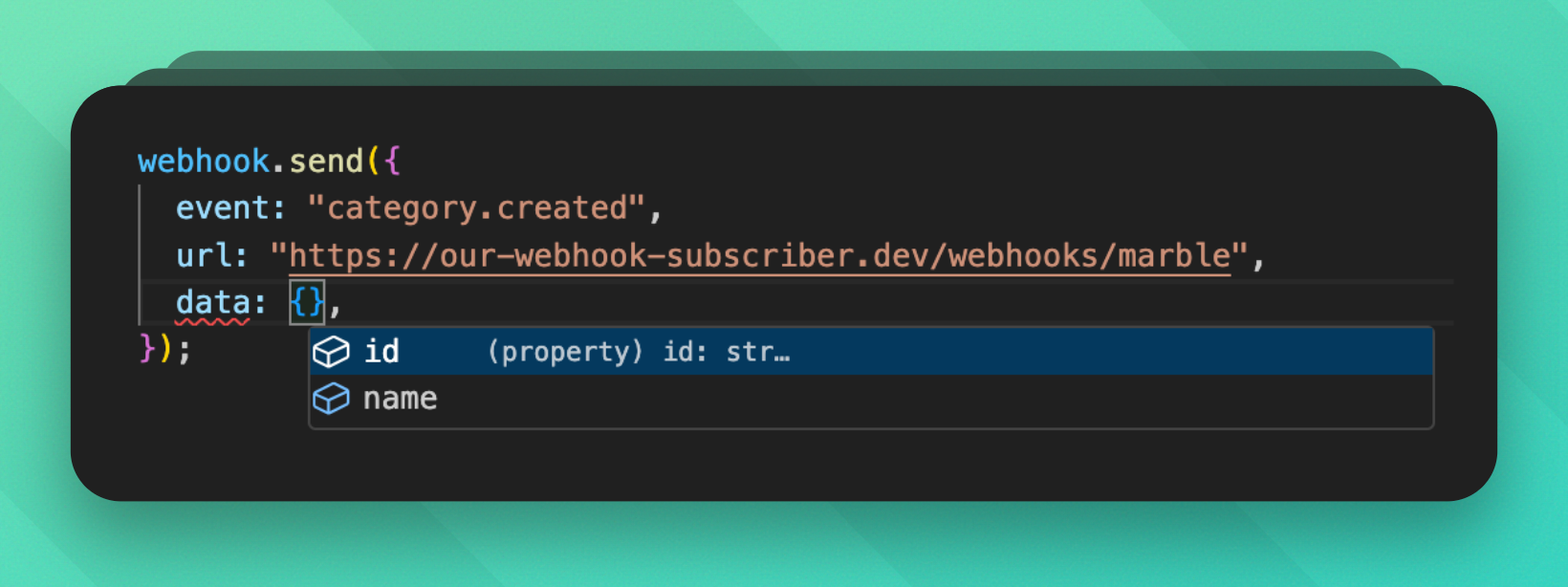 Defining this as a schema allows us to get full type-safety and autocomplete whenever we trigger a webhook event. This way, we will never forget any data that needs to be sent to the webhook subscriber.